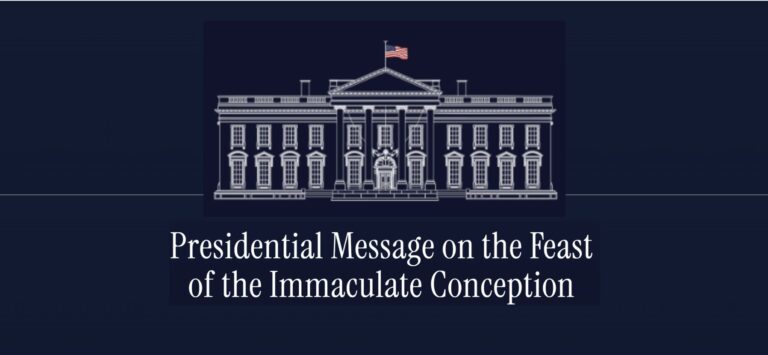 A remarkable thing happened on December 8th, the Feast of the Immaculate Conception. The U.S. President, in an official act, asked the Queen of Heaven to bring peace to the world. Throughout his Official Statement, President Trump portrays Our Lady as God’s most potent instrument of Peace. And he ties it back to her singular act of saying yes to the Will of God at the Annunciation, whereby Salvation entered the world. When the leaders of nations seek God’s intercession for their people, peace and prosperity follow. As Catholics, we know that when Our Lady is the most powerful intercessor