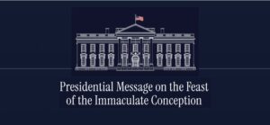 A remarkable thing happened on December 8th, the Feast of the Immaculate Conception. The U.S. President, in an official act, asked the Queen of Heaven to bring peace to the world. Throughout his Official Statement, President Trump portrays Our Lady as God’s most potent instrument of Peace. And he ties it back to her singular act of saying yes to the Will of God at the Annunciation, whereby Salvation entered the world. When the leaders of nations seek God’s intercession for their people, peace and prosperity follow. As Catholics, we know that when Our Lady is the most powerful intercessor